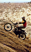 to make a motorbike ad for Honda in 1971. In the ad he promoted their new dirt bike. The model was a CR250 and was called an Elsinore (after the great off-road race held at Lake Elsinore). We hear Steve in a 'voice over' in which he describes the joys of bike riding, and extolls the need to ride safely, as he is seen riding through various off road terrains. He was paid One Million Dollars.